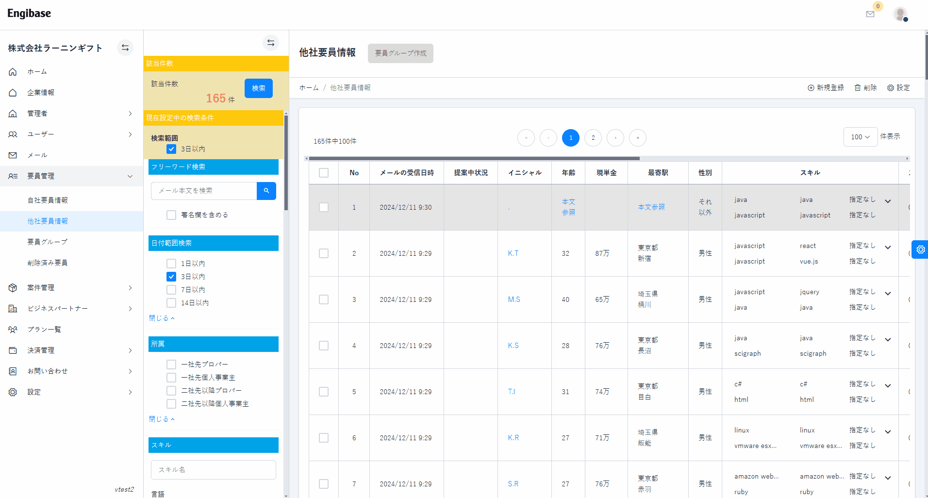 Engibaseでは、膨大なデータベースから必要な案件や要員をわずか数秒で検索できます。