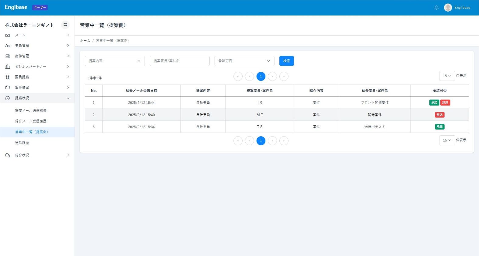 Engibaseでは、提案から契約締結までのすべてのフローを